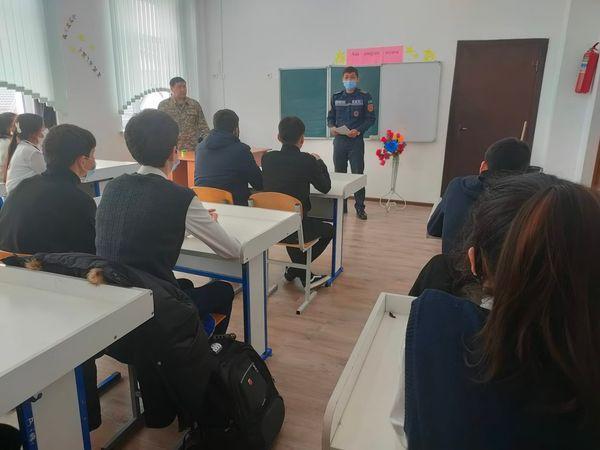 Б.Садырбайұлы атындағы орта мектебі окушыларымен Аксу аудандық төтенше жағдайлар бөлімі қызметкерлермен кездесу және жаттығу өткіз