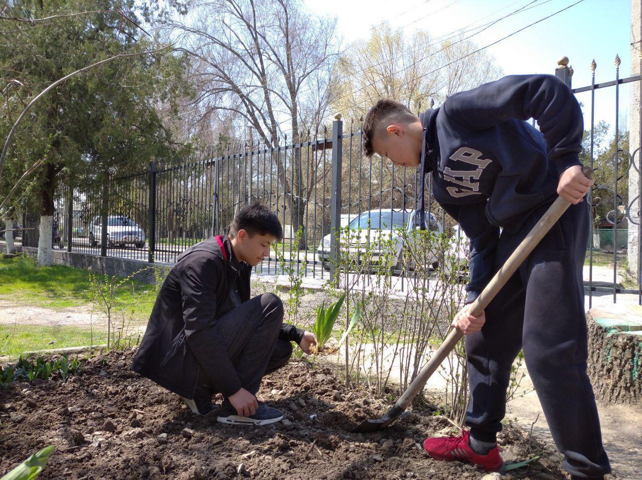 “ТАЗА ҚАЗАҚСТАН” “ЖАСЫЛ АЙМАҚ” экологиялық акциясы бойынша ЖЕТІСУ облысының мектеп оқушылары көшет, гүл отырғызып, мектеп айналасын тазартуда. » Б.Садырбайұлы атындағы орта мектебі