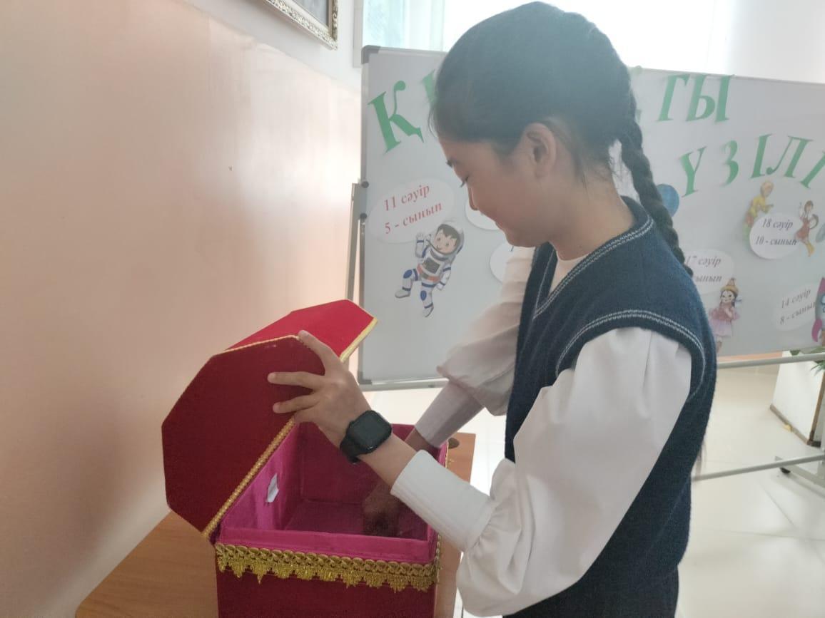 Б.Садырбайұлы атындағы орта мектеп » Біз туралы » Әдістемелік жұмыстар » "Талапкер" гуманитарлық пәндер бірлестігінің онкүндігінің аясында, "Қызықты үзіліс" тақырыбында, үзілісті тиімді өткізу мақсатында қазақ тілі мен әдебиеті пәнінің мұғалімі Л.Б. Нұрбекова үзілісті ұйымдастырды